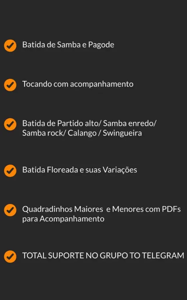 O método A PROCURA DA BATIDA PERFEITA foi pensado e desenvolvido para você que sonha em tocar cavaquinho mas não sabe por onde começar. Com foco em batidas, você vai aprender todos fundamentos necessários para tocar os principais ritmos no cavaquinho, independente se for para hobby ou se deseja tocar profissionalmente no futuro.
